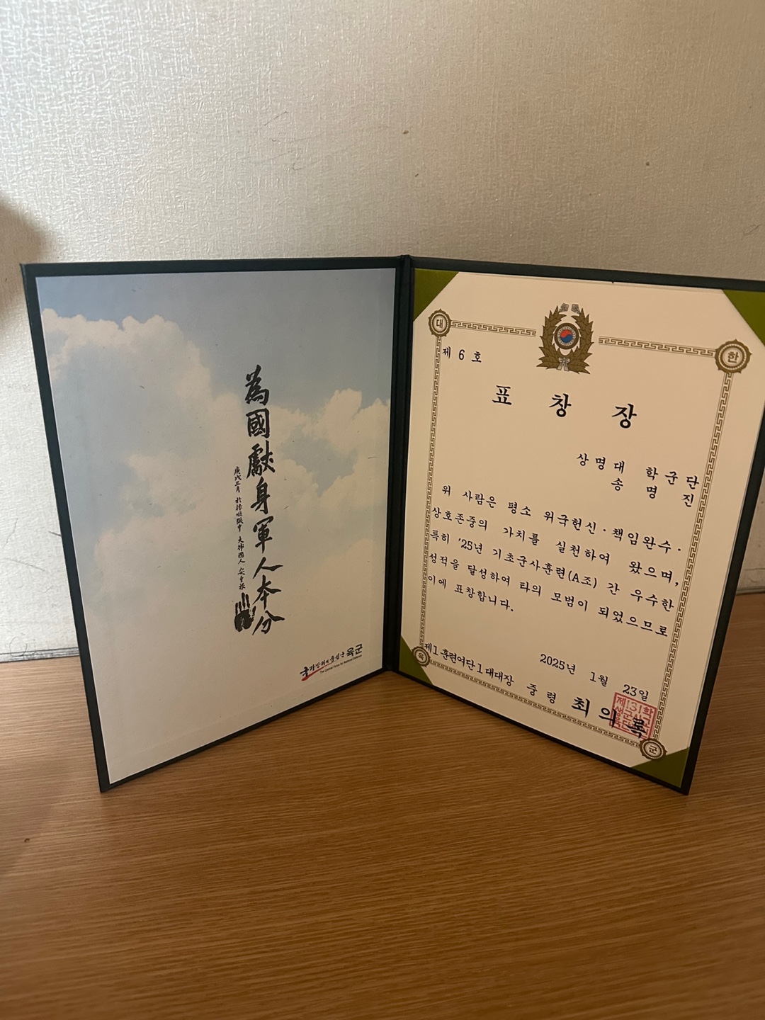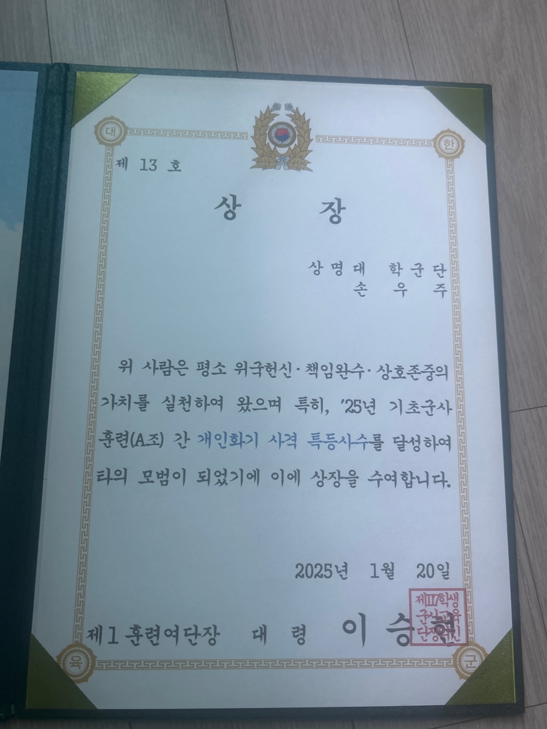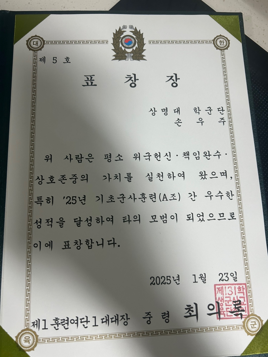 2025년 기초군사훈련 우수 후보생