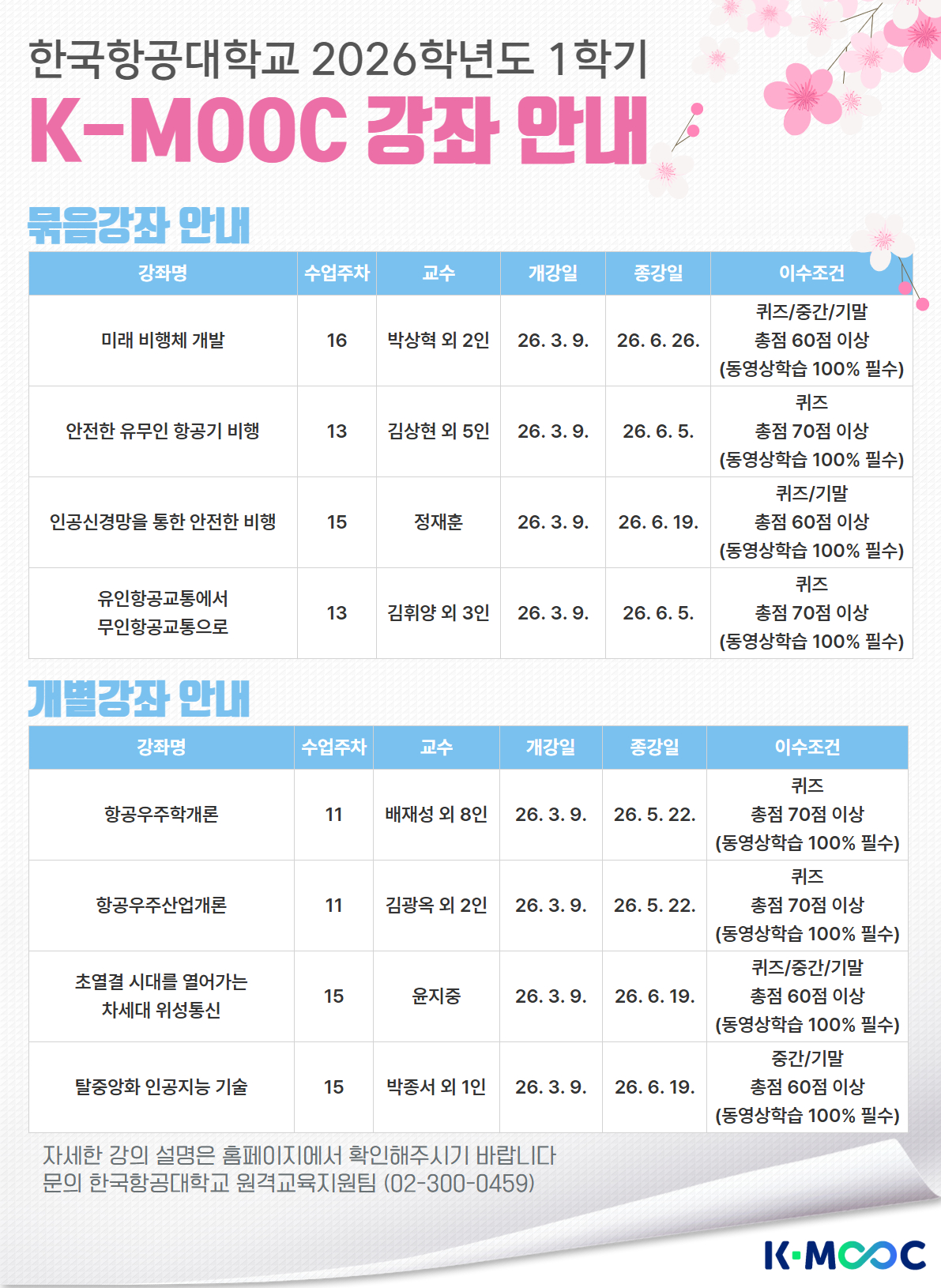 - 한국항공대학교 2026년 1학기 K-MOOC 강좌 수강 안내