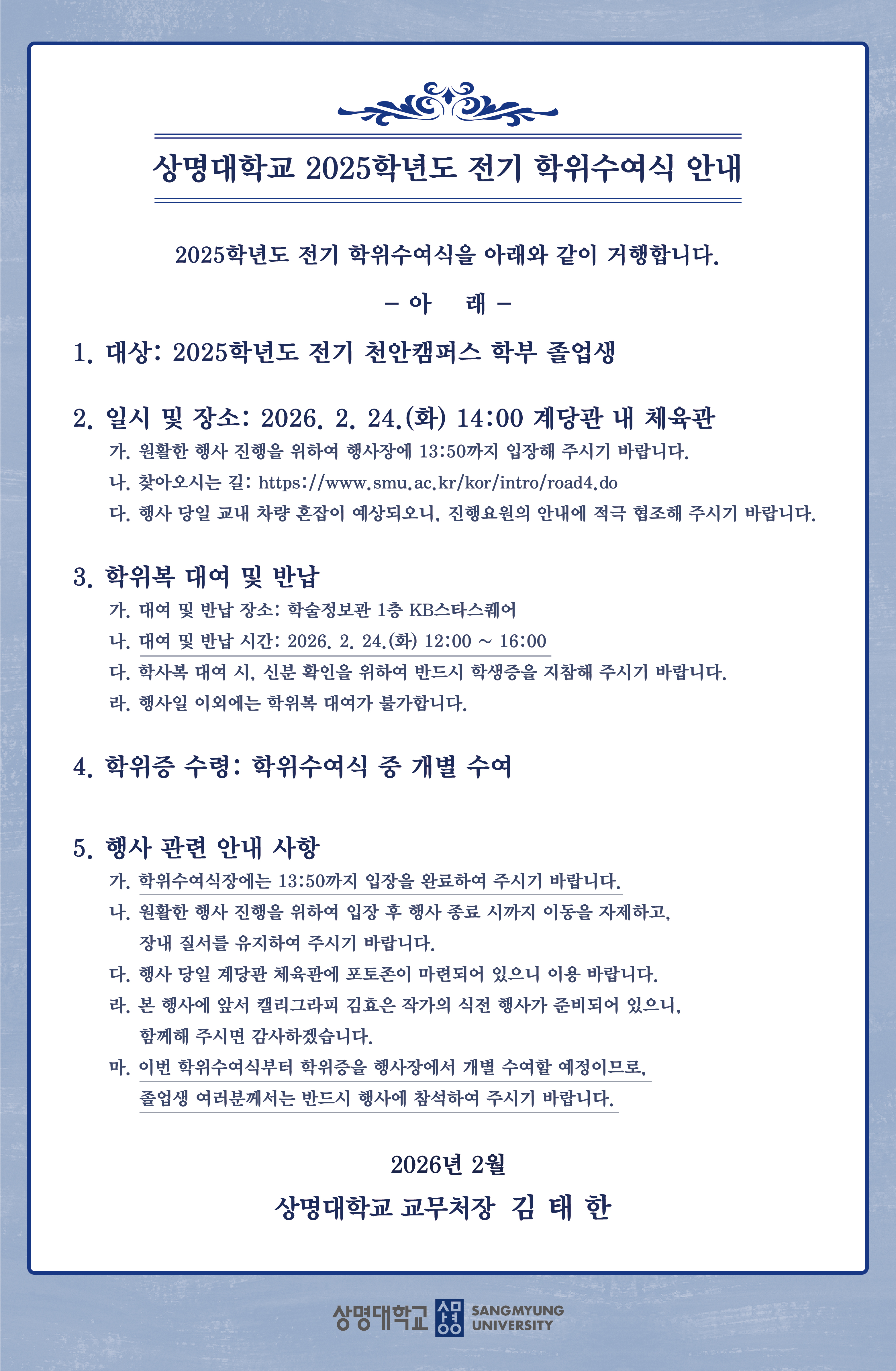 | 천안 [학사] | [교무팀] 2025학년도 전기 학위수여식 안내 |